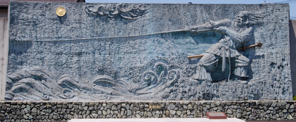 | 説明 | 大社道の駅ご縁広場にある国引き神話のレリーフ「未来を拓く」です。 八束水臣津野命(ヤツカミズオミツヌノミコト)が国を引っ張っている様子を描いています。 |