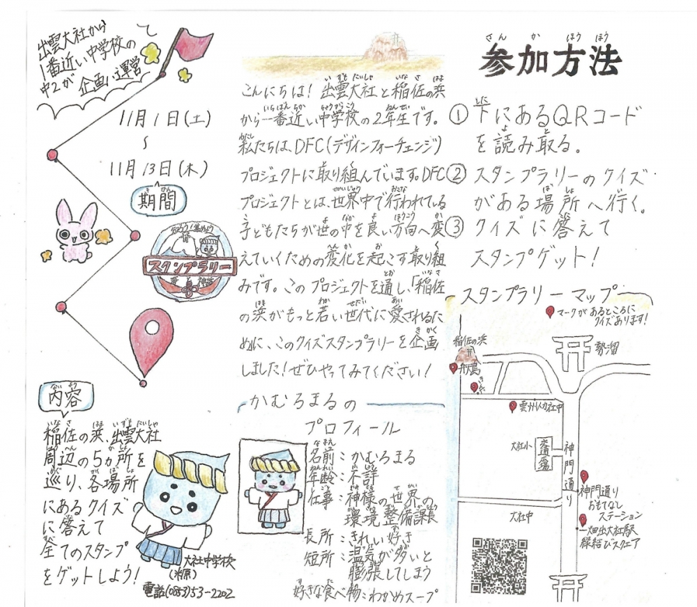 大社中学校では、稲佐の浜が観光客を含む若い世代により親しまれることを目指し、